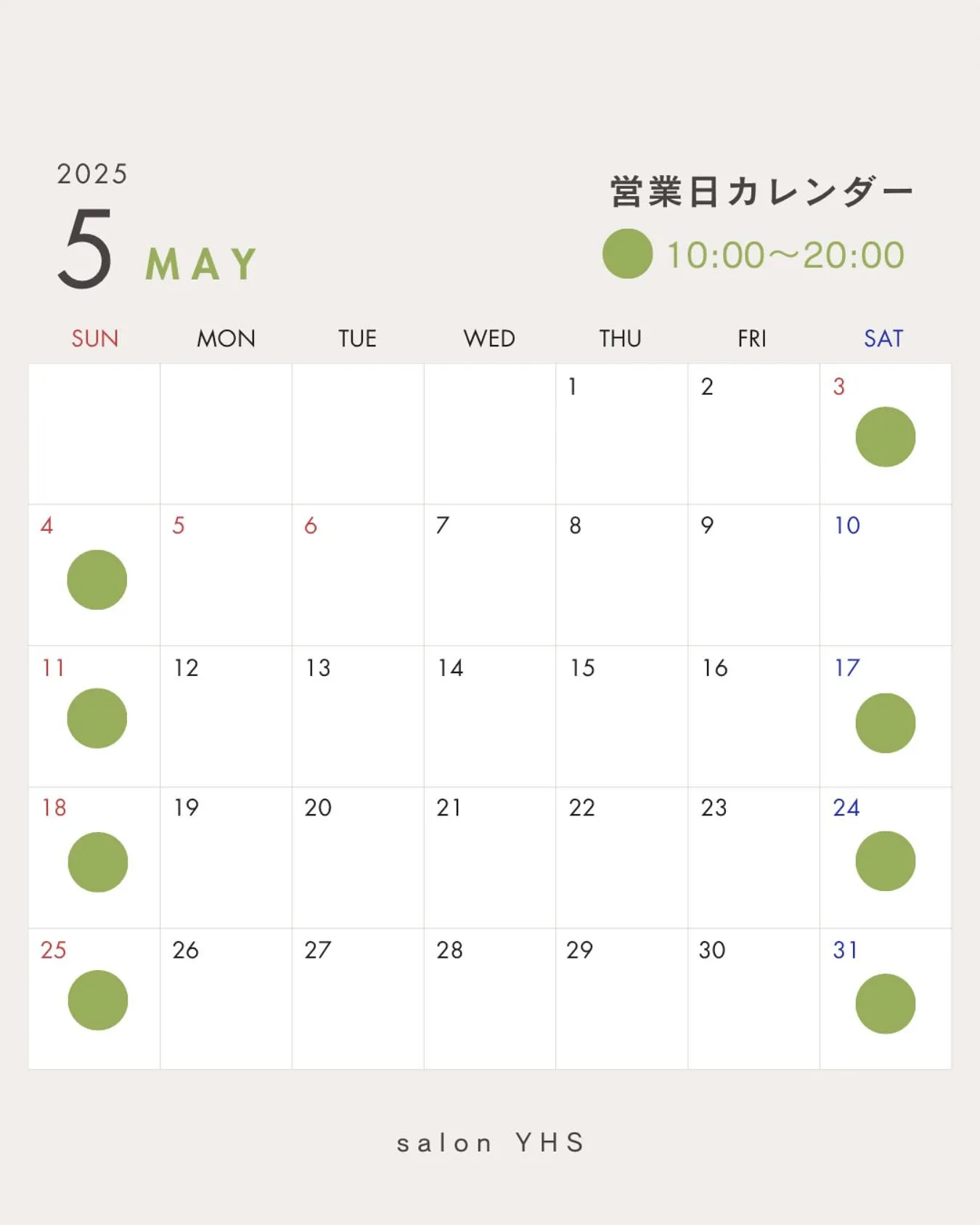 5月の営業日カレンダーです🗓️