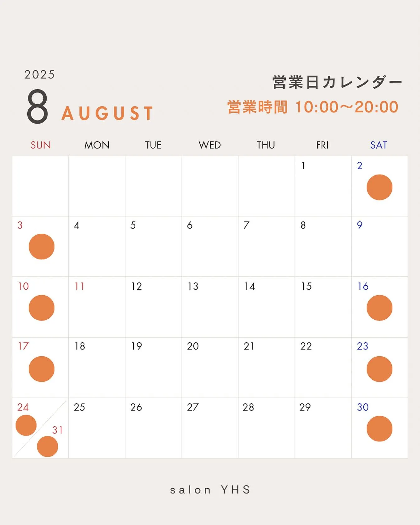 遅くなりましたが、8月の営業日カレンダーです🗓️